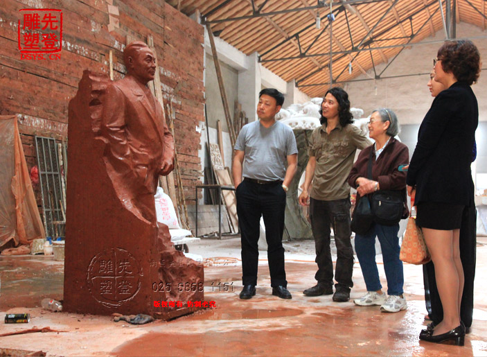 先登雕塑公司,東郭雕塑工作室受有關部門委托,為東南大學楊廷寶故居創作青銅全身像,楊廷寶之女,楊士英教授及其孫女、潘翔處長和相關領導蒞臨先登雕塑公司指導