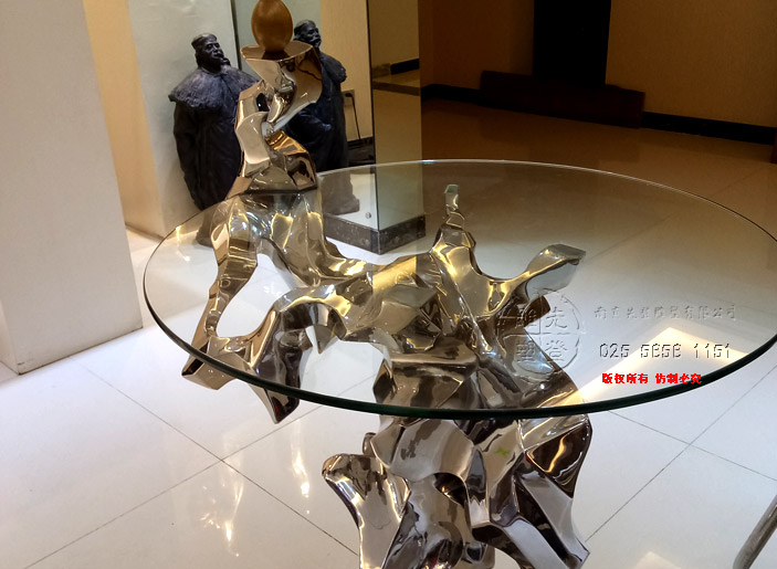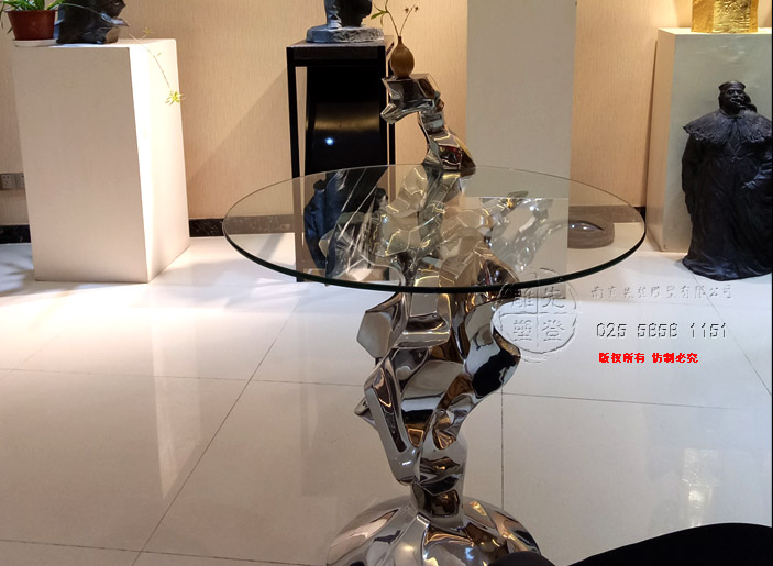 第5空間實(shí)驗(yàn)性研究新作《對(duì)話 · 石溪》,該作品名中石溪具有多重意義,一是指表象清泉石上流之表意(玻璃代表水,在人造金屬石上流動(dòng)),另一含義是指和先賢著名畫家石溪的心靈對(duì)話也,再則,石溪乃是一種情境,有曲水流觴之意境也,對(duì)話是指人與自然、人與語境、人與人的對(duì)話,桌子便是在一起對(duì)話與交流的平臺(tái)